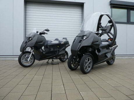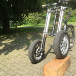 Für die Dreirad-Variante (mit zwei Rädern auf der Vorderachse) entwickelte TM-Design ein vollständig neues Achs-Neigekonzept, von der ersten idee über die Entwicklung bis zum Prototypenbau.